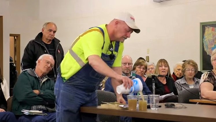 En una audiencia ante el comité de la Conservación Petróleo y Gas de Nebraska, un agricultor local dejó sin palabras a los miembros de la junta partidarios de la fracturación hidráulica o ‘fracking’ después de ofrecerles que bebieran agua contaminada debido a este polémico método de extracción.