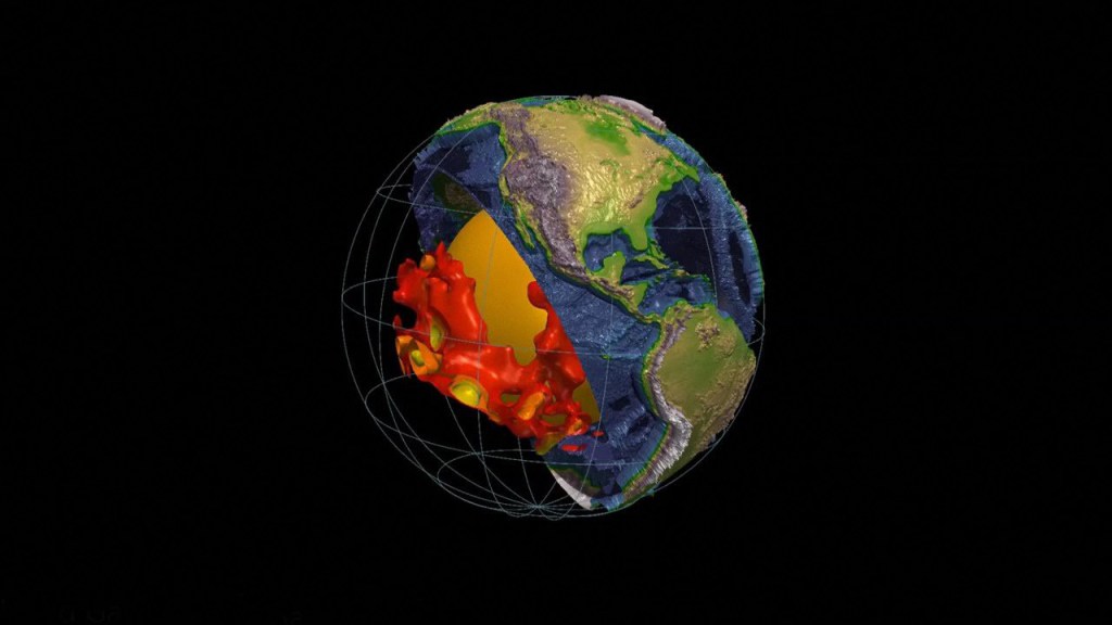 Dos enormes estructuras se encuentran en lo profundo de la Tierra, más o menos en lados opuestos del planeta. Las dos estructuras, cada una del tamaño de un continente y 100 veces más altas que el Monte Everest, se sientan en el núcleo, a 1.800 millas de profundidad, y aproximadamente a mitad de camino al centro de la Tierra.