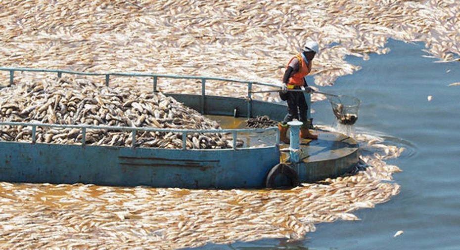 Hay tantos peces que se usan barcazas para recogerlos. Los cuerpos se encontraron en varios kilómetros a lo largo del río .