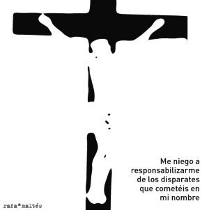 Quiero referirme a la iglesia española, que es un claro ejemplo de esta multinacional global en la que se ha convertido. La Constitución española declara al Estado como aconfesional. Sin embargo, la iglesia es la única institución privada que se le menciona, y se usa como argumento al reconocimiento de la indiscutible mayoría católica del país. (Viñeta de Rafa Maltés)